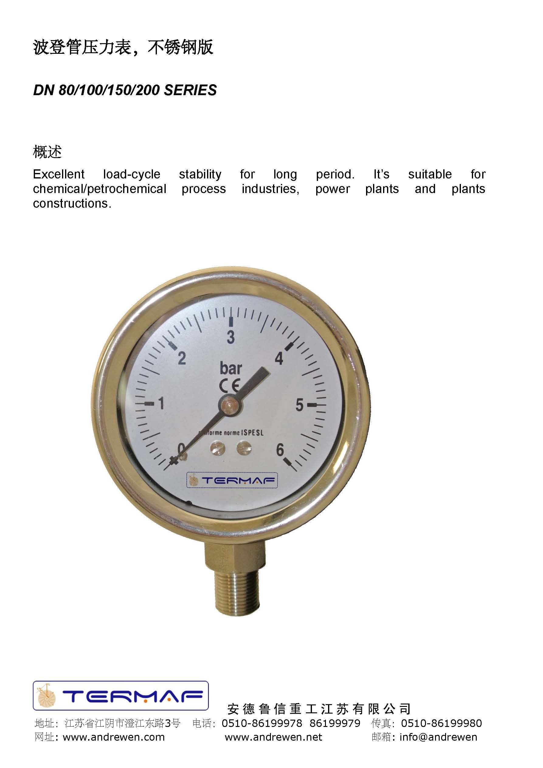 波登管壓力表,不銹鋼版-意大利TERMAF