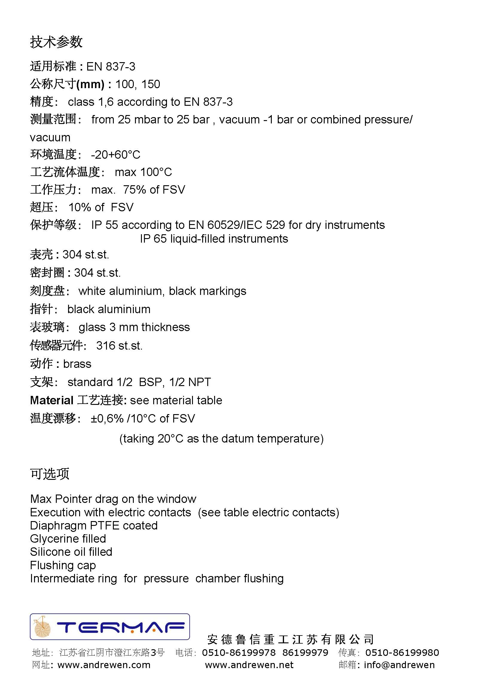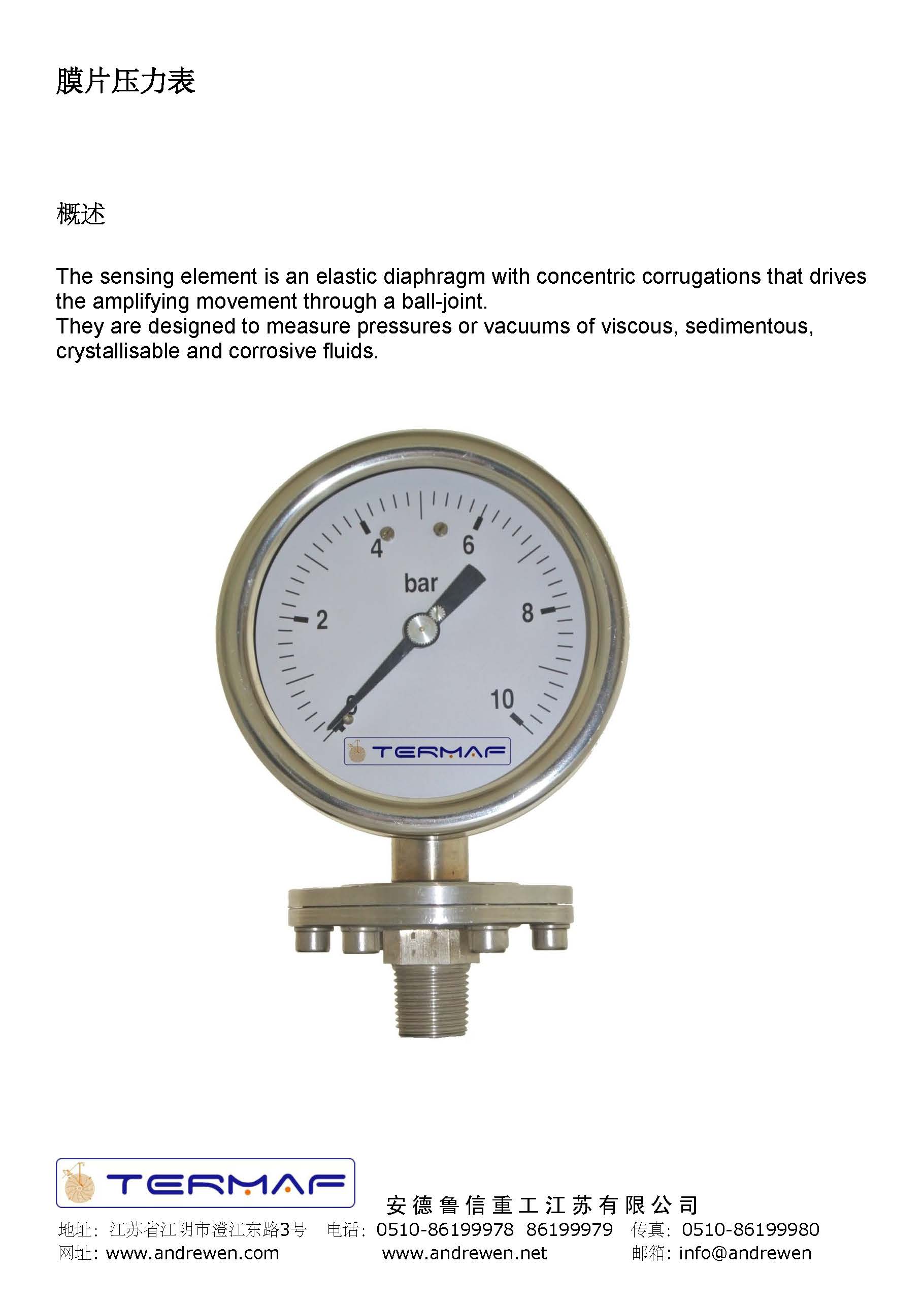 膜片壓力表-意大利TERMAF